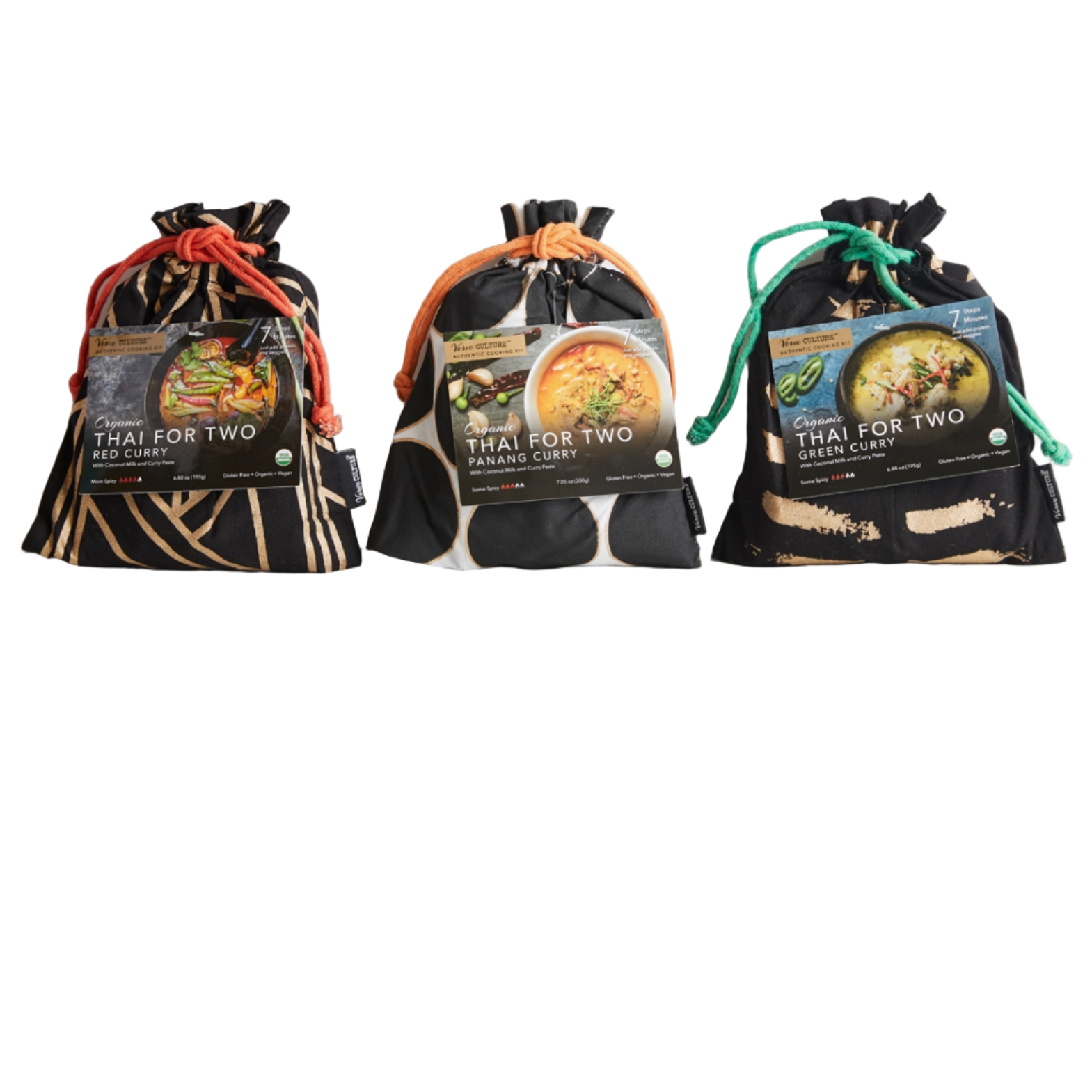 Each DIY cooking kit is crafted with organic, vegan, and gluten-free ingredients sustainably sourced from small farms in Thailand. Just add your choice of protein and vegetables, cook with the included curry paste and coconut milk, and serve over rice for a restaurant-quality Thai meal ready in under 20 minutes.