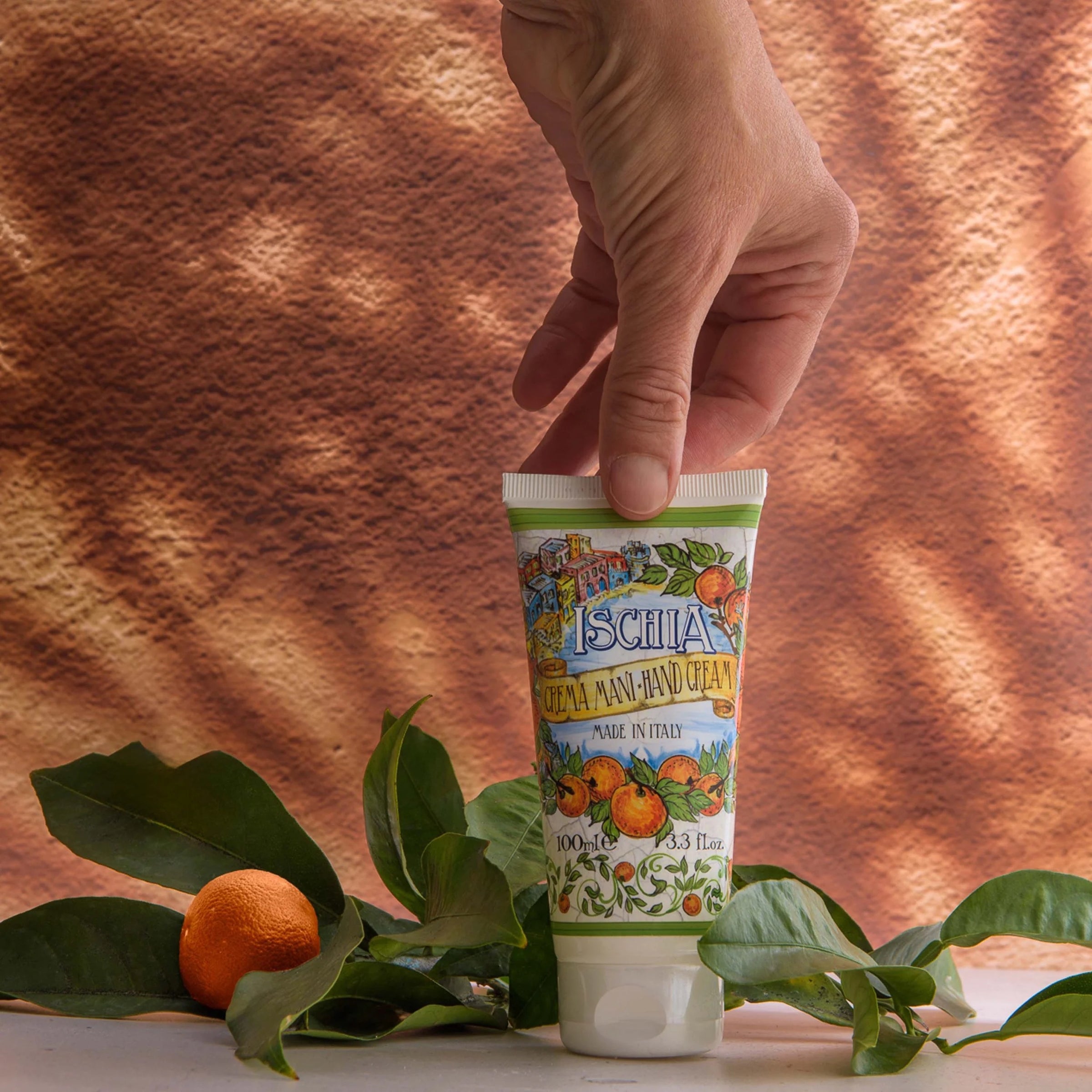 Experience Ischia — where fresh sea air and citrus gardens come together in a luxurious Italian hand cream.