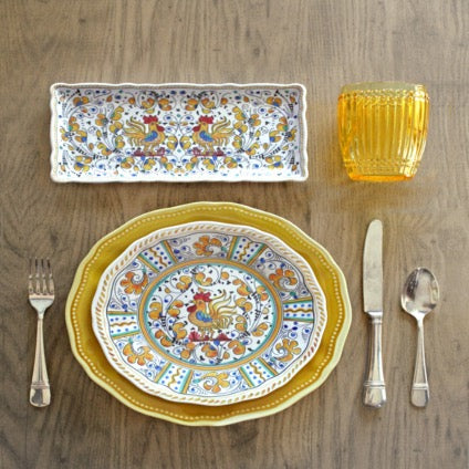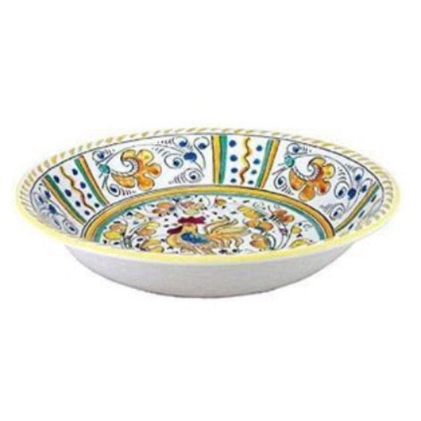 The Le Cadeaux Rooster Yellow Salad bowl measures approximately 13-3/4" across in diameter x 4" tall.