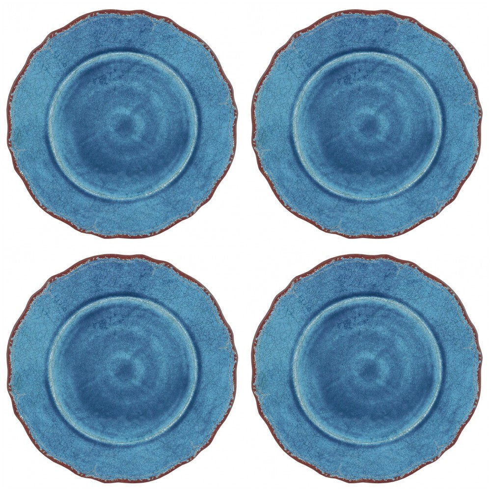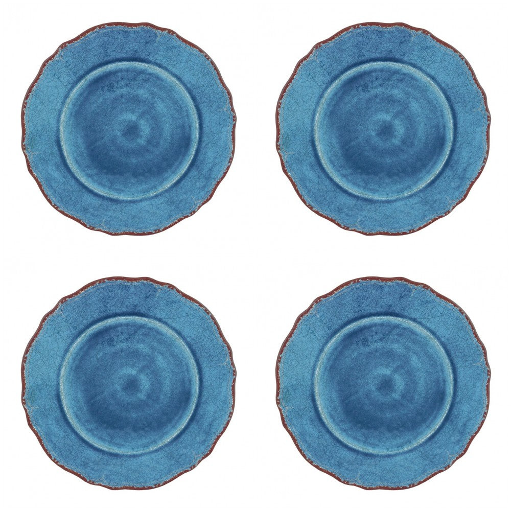 The Le Cadeaux Antiqua Blue dinnerware set has the look of gorgeous glazed pottery but is made of durable, high-quality BPA-Free melamine. The dinner plates, salad plates, and cereal bowls have an antiqued detail on the rims with a textured surface.