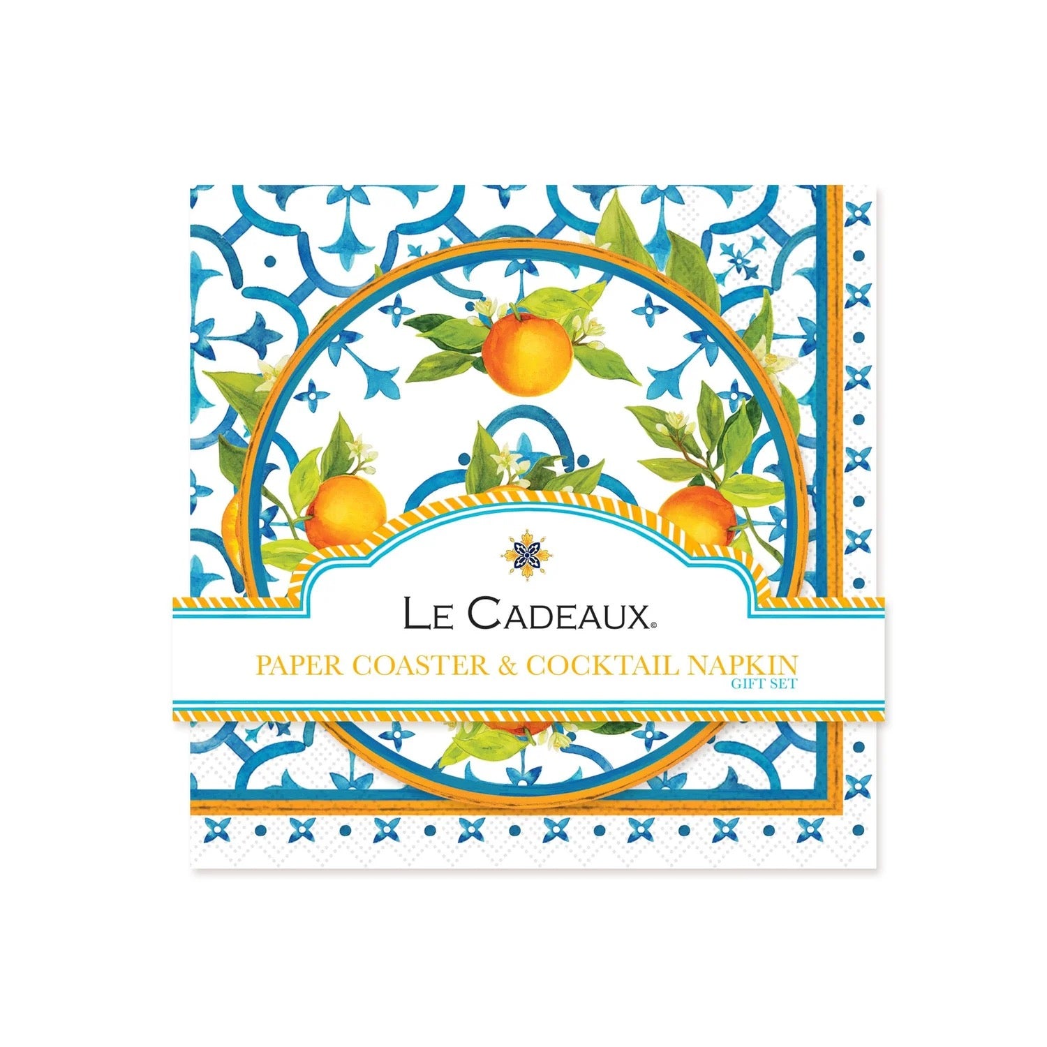 Decorative melamine napkin holder with matching Valencia cocktail napkins — a must-have entertaining accessorywith a gift-ready presentation.
